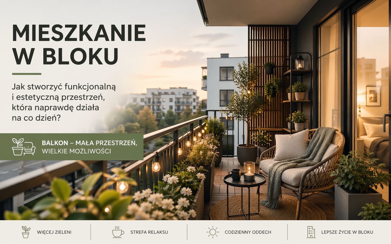 Mieszkanie w bloku nie oznacza rezygnacji z estetyki czy kontaktu z naturą. Wręcz przeciwnie – przy dobrze przemyślanym podejściu można stworzyć funkcjonalną, dopracowaną przestrzeń, która realnie wpływa na komfort życia.